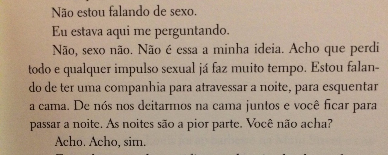 Na verdade, o que ela propõe é que sejam companheiros a noite, para conversar compartilhar suas histórias e experiências de vida e dividirem uma cama, um sono o calor em uma noite fria de inverno.Louis a princípio se choca com a proposta de Addie, porém ela logo explica que nada mais seria do que dos velhos viúvos, unindo suas solidões, partilhando experiências dessa longa jornada chamada vida. Louis aceita a proposta. E os dois embarcam em uma experiência maravilhosa, cheia de confidencias, de apoio e afeto, e descobrem que não há idade para ser feliz, que na velhice se pode ser feliz e ter qualidade de vida, ambos se sentindo mais motivados, de autoestima elevada em uma idade onde não há preocupações em se dar satisfação a mais ninguém. O que os dois dividem é um romance maduro, gentil e cálido, sem a preocupação em satisfazer um ao outro sexualmente com peripécias e performances, o que eles compartilham é um encontro de almas, mais do que qualquer outra coisa.
